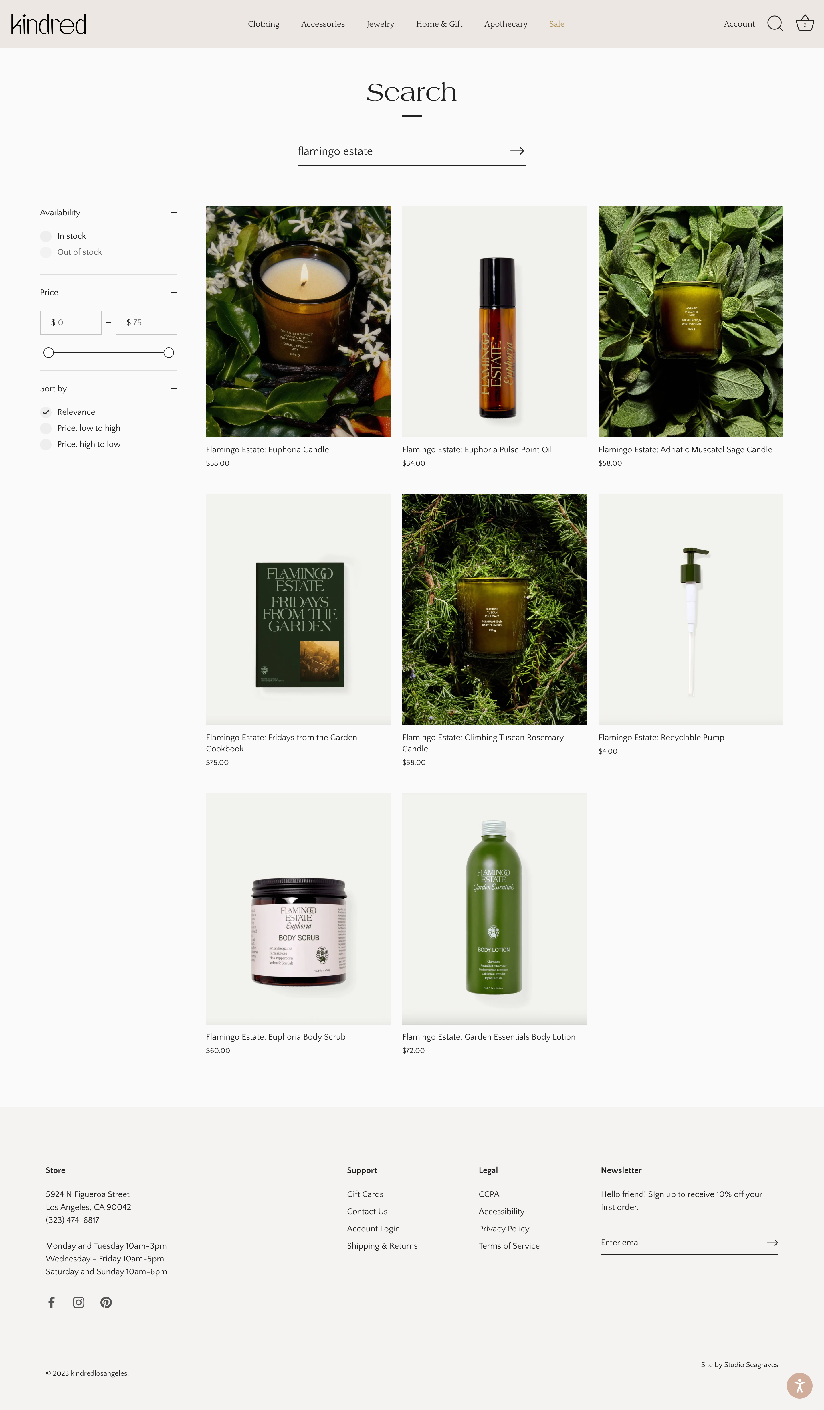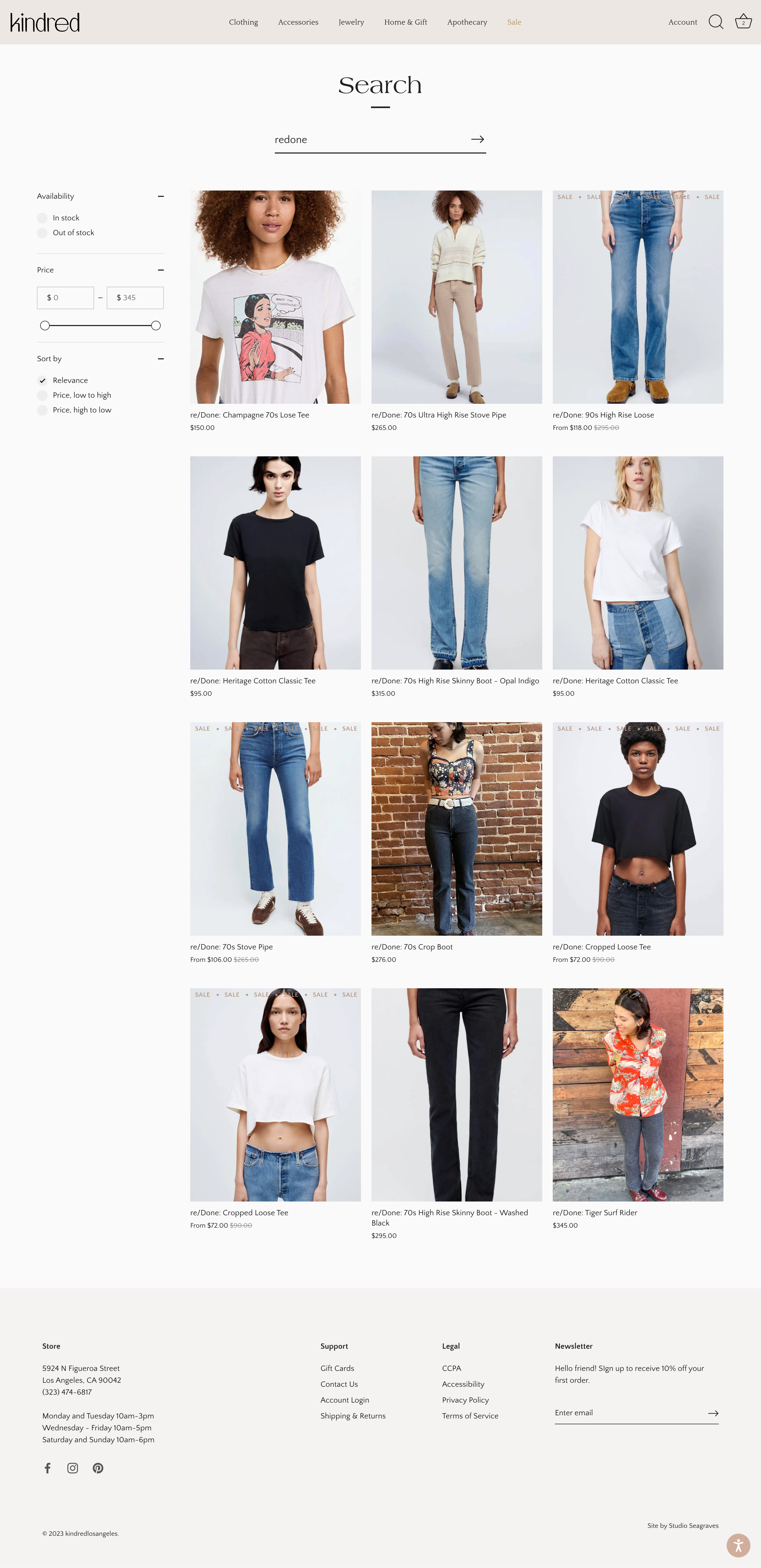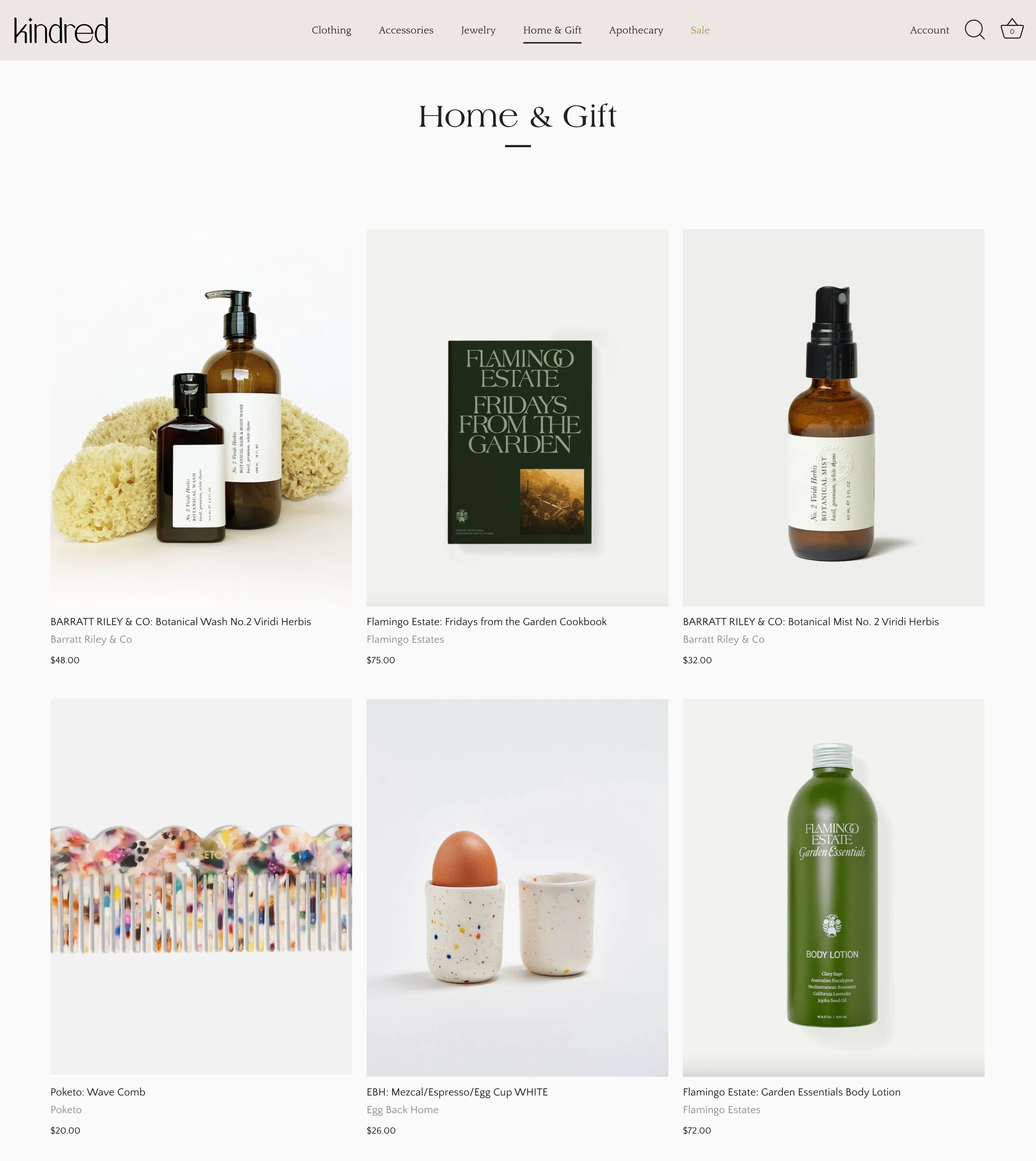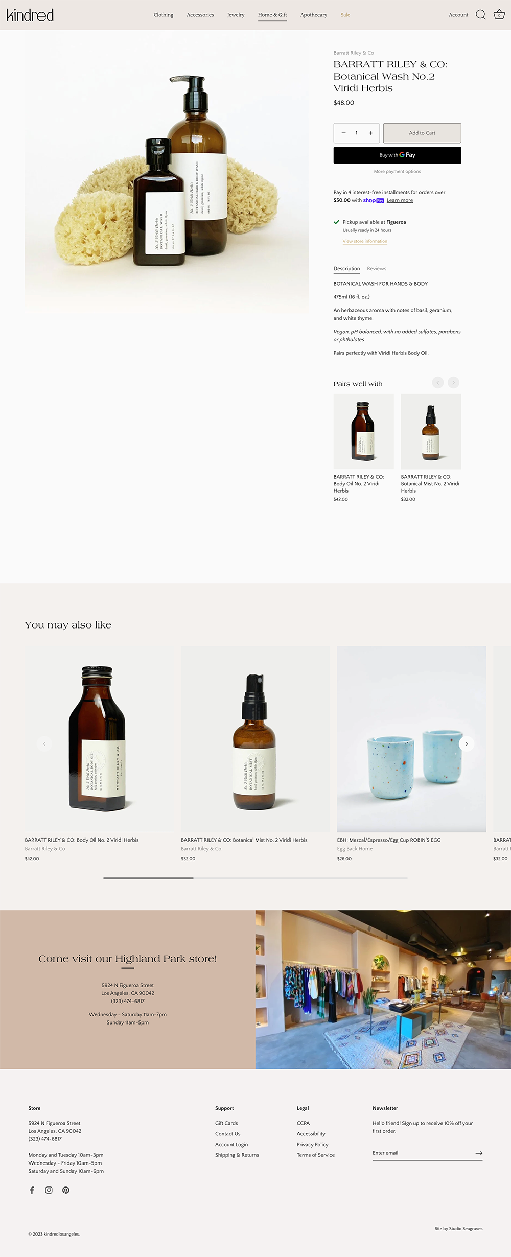 Kindred is a Los Angeles-based clothing, accessories and home decor store based in the Highland Park area. The brick and mortar carries cool indie brands with a laid back vibe. Owners Jen & Sarah wanted a website to reflect their store and vibe. Studio Seagraves was hired to design their website and optimize with the latest apps and integrations.